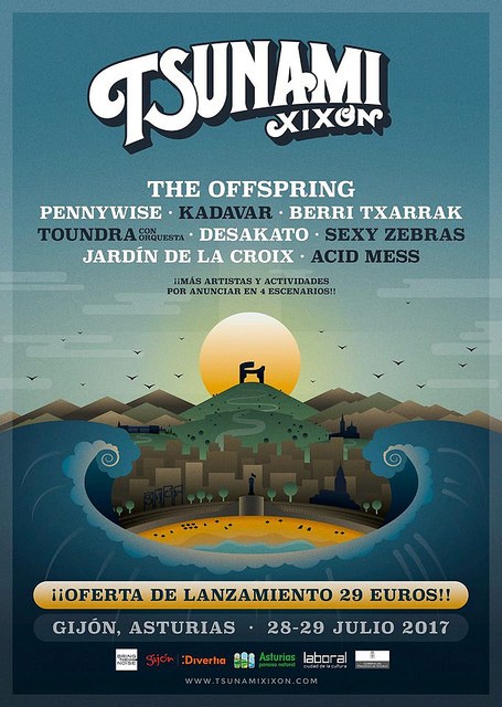 El Tsunami Xixon, que se celebrará entre los días 28 y 29 de julio, cuenta ya con un buen número de bandas de rock confirmadas, entre las que se cuentan Berri Txarrak, Kadavar, Sexy Cebras o Desakato. Sin embargo laconfirmación más celebrada ha sido la de la banda americana de rock-punk internacional "The Offspring", que visitarán Asturias como indiscutible cabeza de cartel.
