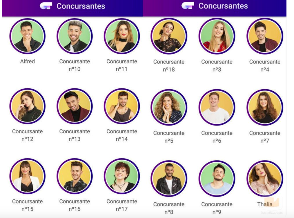 Pese a que la imagen filtrada, fruto de un fallo en la app que servirá para votar en cada gala de OT 2017, solo muestra el nombre de dos de los participantes -Alfred y Thalía- muchos de los rostros nos suenan de otros programas de éxito, como La Voz, La Voz Kids o Fama.