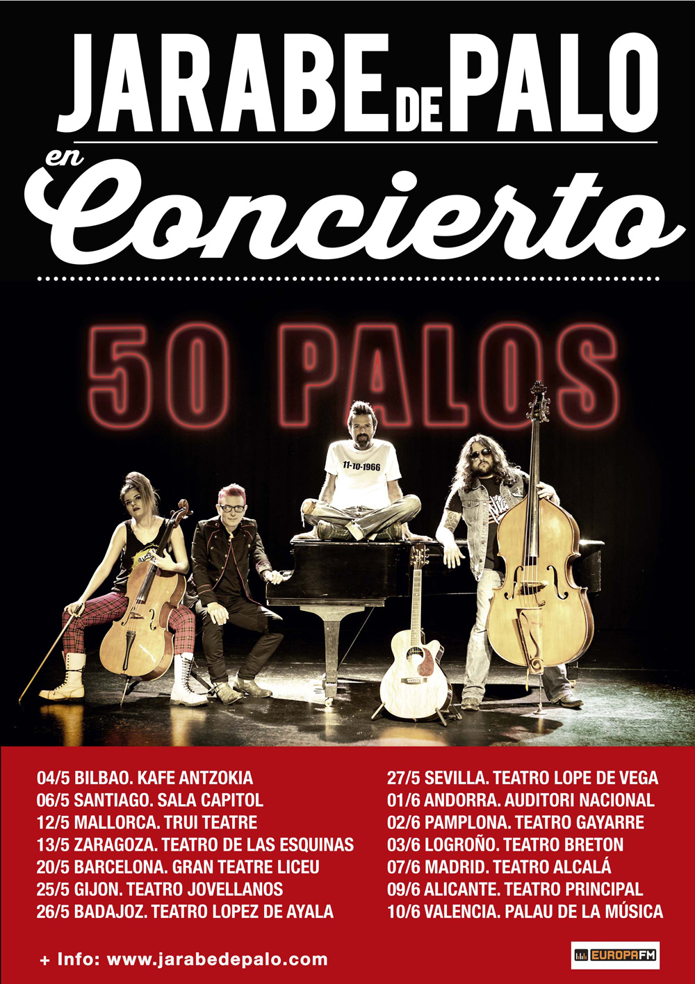 La nueva gira de Jarabe de Palo arrancará en marzo en México, y llegará a nuestro país en mayo. En total 14 conciertos, cuyas fechas puedes consultar aquí, el mismo sitio en el que se pueden adquirir las entradas a precios que oscilan entre los 25 y los 50 euros.