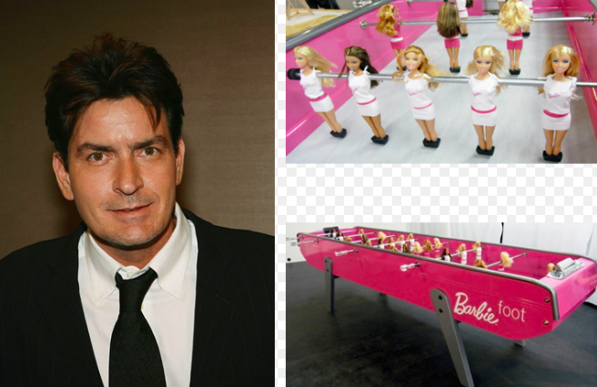 Pocos personajes tan excéntricos como Charlie Sheen. Tan pocos como futbolines con barbies hay en el mundo (20). A él le pareció una buena idea pagar 20.000 USD por uno de ellos.